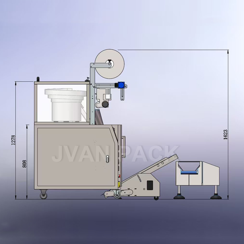 Suitable for products that require a bag width of less than 150mm and a vibrating disc that can automatically sort materials, such as food candies and milk tablets; Tablets, pills, capsules; Hardware fasteners such as bolts, nuts, washers, etc; Furniture accessories, toy blocks, etc.
